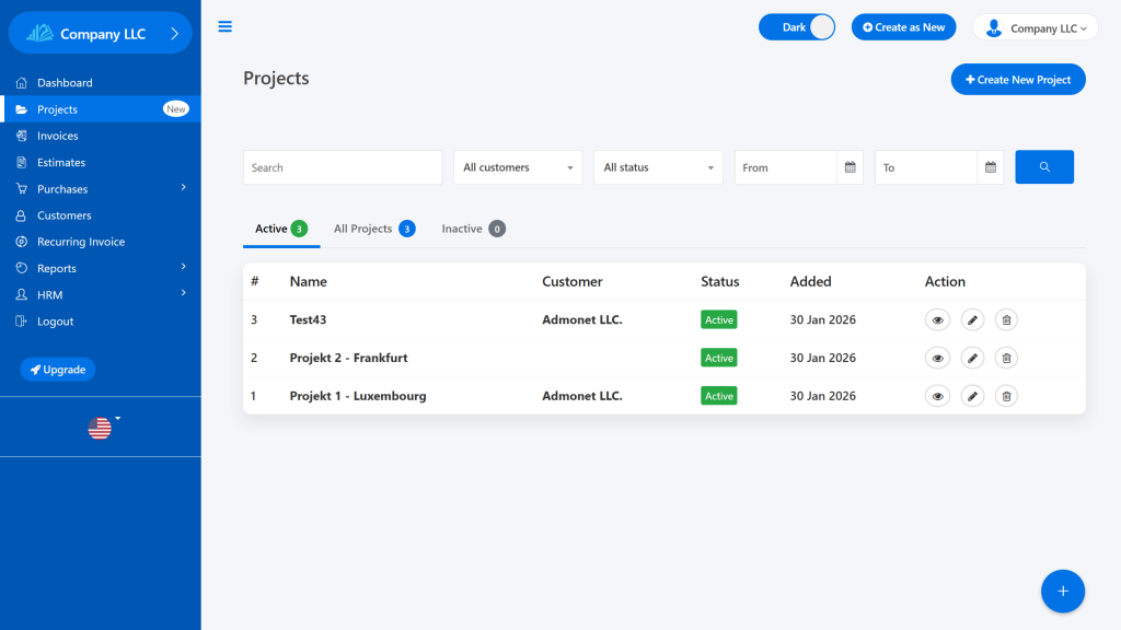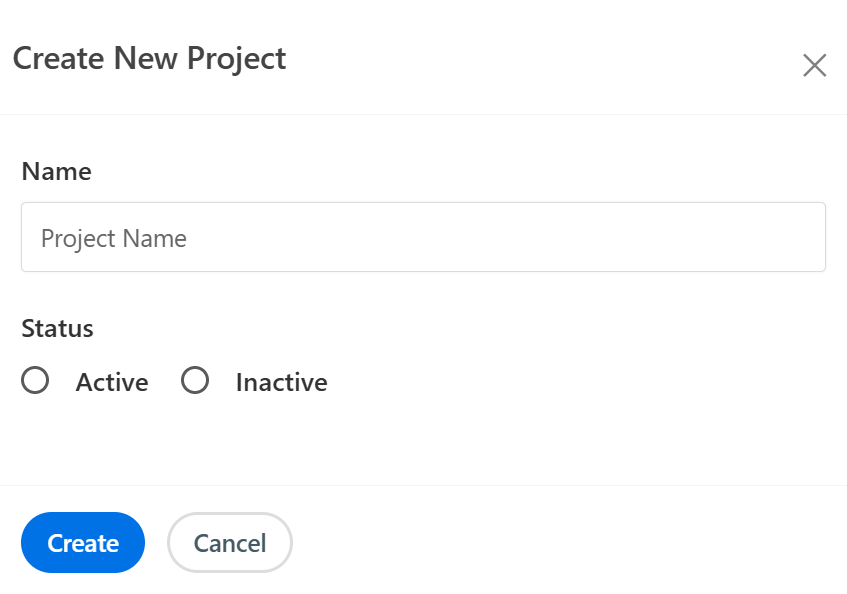 If no status is selected, the project will be created as Inactive by default, which you can change later.