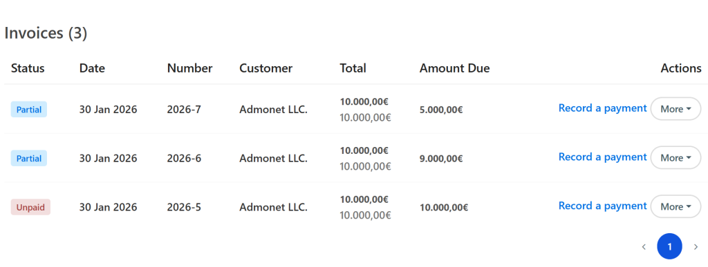Status | Date | Number | Client | Total | Amount Due | Actions